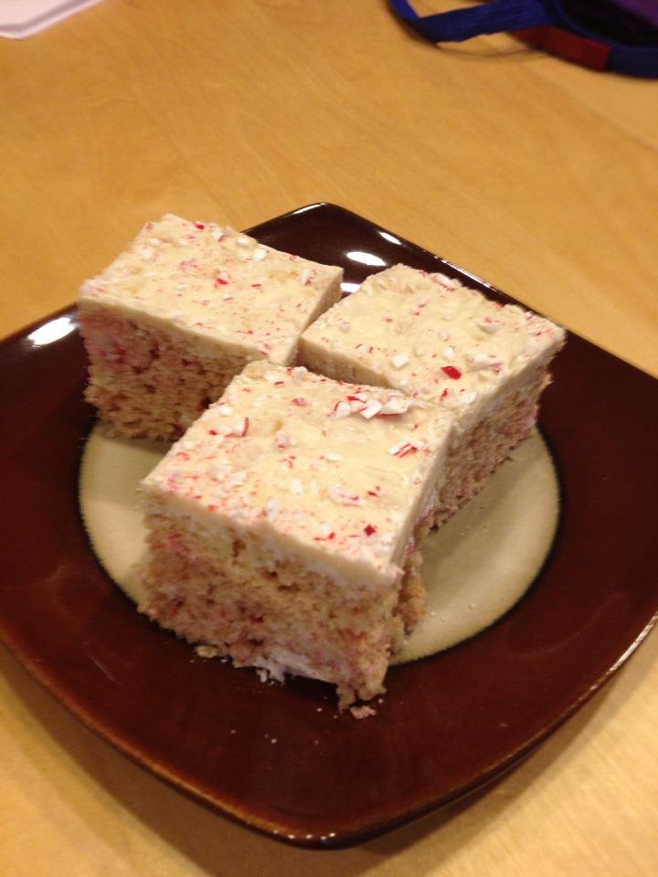 So yesterday was spent doing a lot of baking in preparation for an evening spent with friends. One of the things my daughter and I made were candy cane rice krispie treats. Some of you might turn your nose up at the idea, but trust me on this one. If you like rice krispie treats and candy cane flavors even a little, you'll LOVE this.